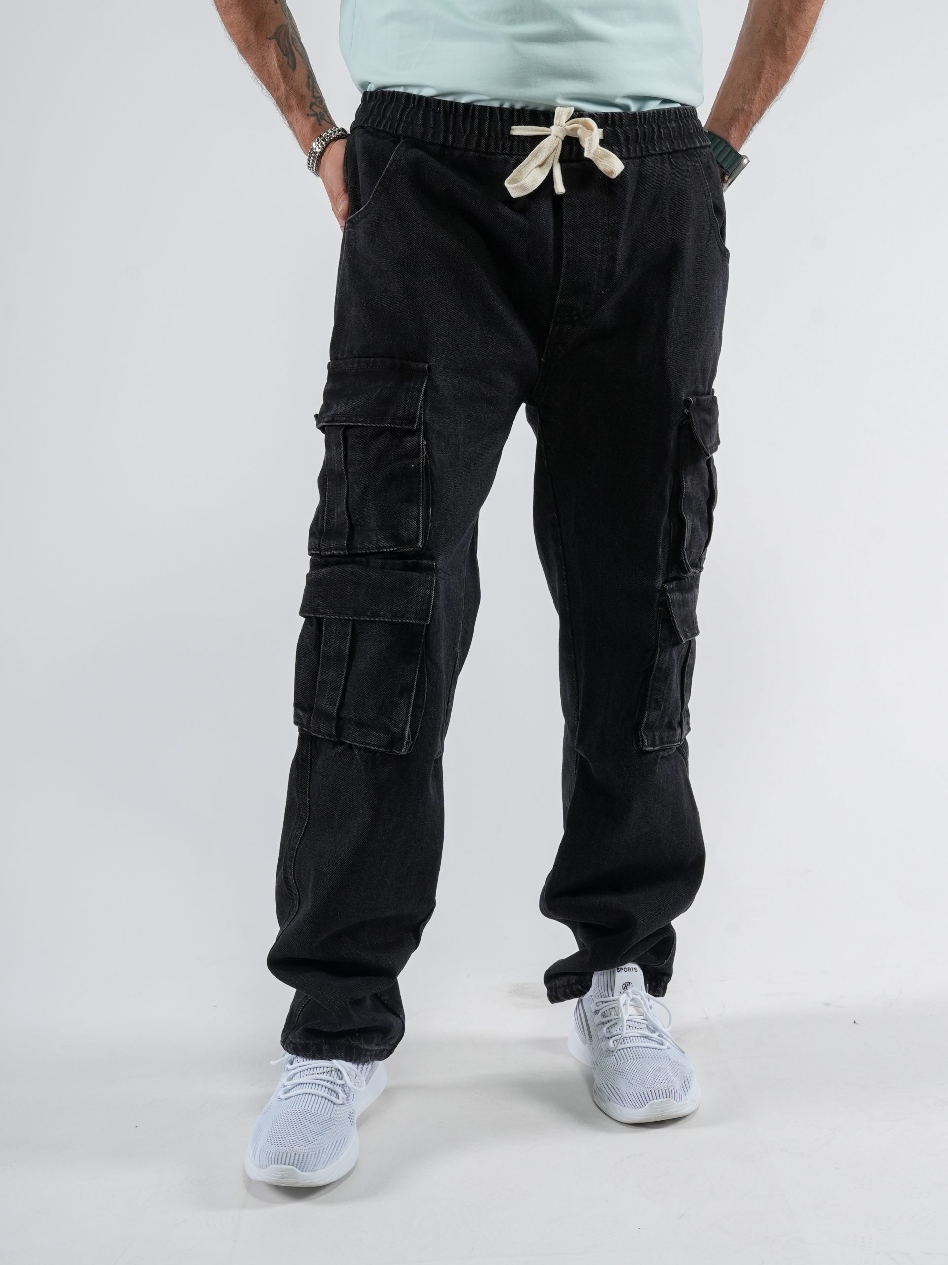 - Men’s Denim Cargo Jeans - 8 Pockets, Baggy Relaxed Fit